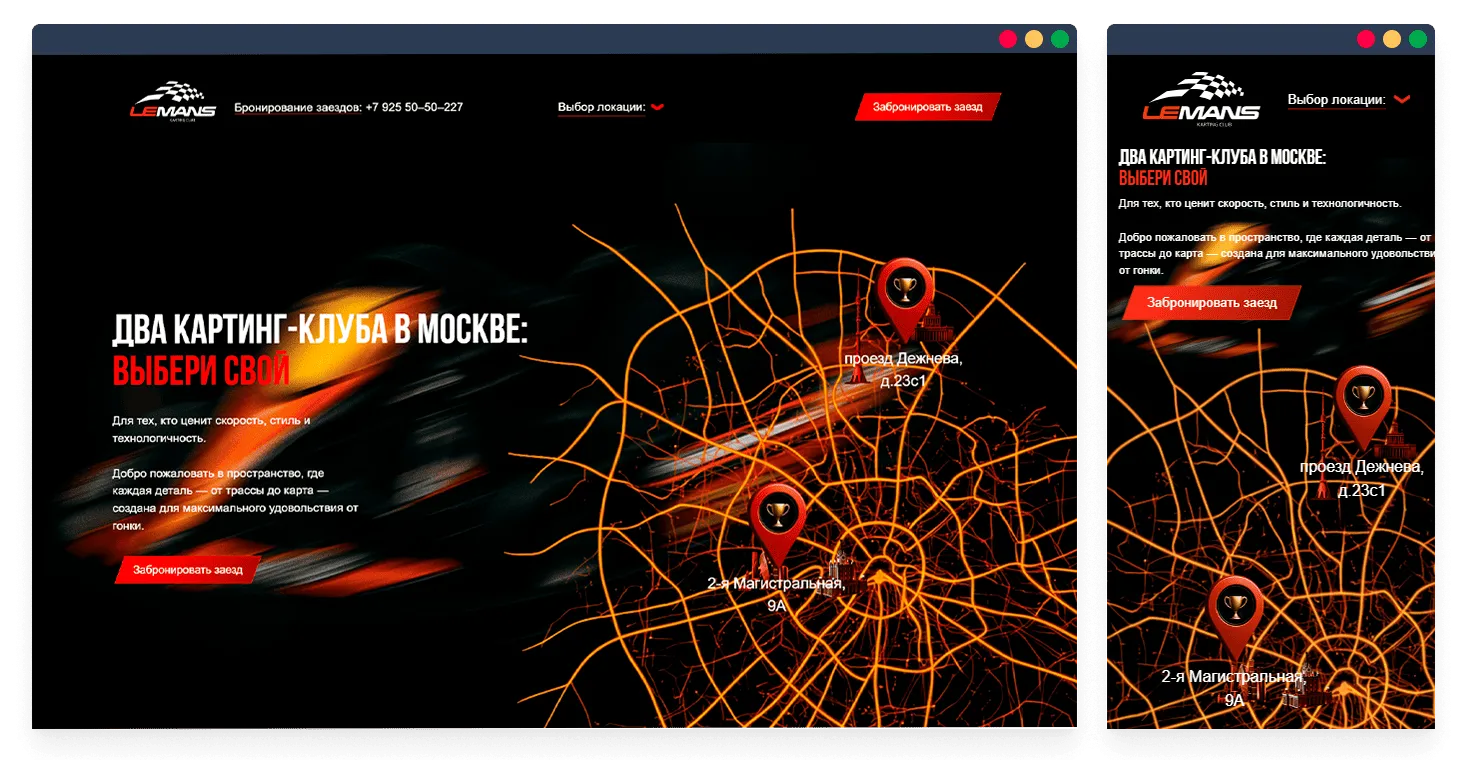 Основной задачей было переработать устаревший дизайн сайта и улучшить пользовательский опыт с учётом специфики развлекательного бизнеса, сделав интерфейс более современным, динамичным и вовлекающим. Также важно было реализовать адаптивную верстку для корректной работы сайта на всех устройствах, с особым вниманием к мобильной версии.